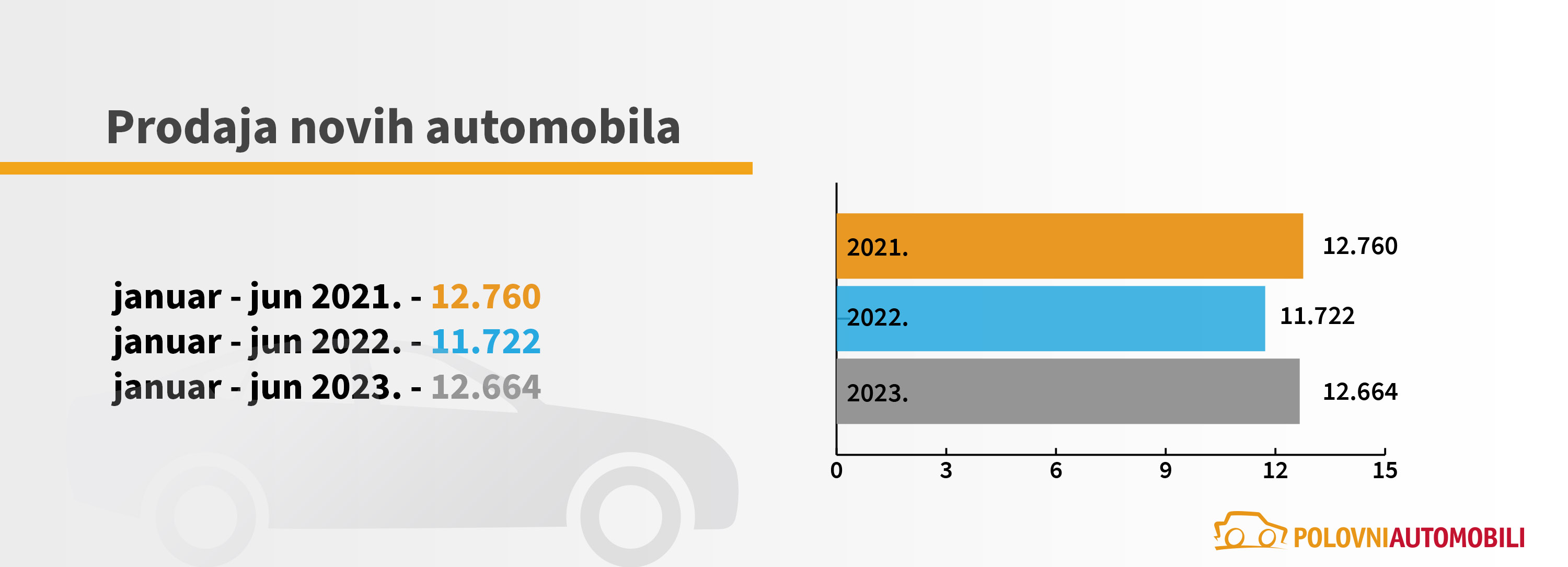 Prodaja novih automobila u prvoj polovini ove godine „skočila“ je u odnosu na isti period 2022. dok je kod polovnjaka i dalje prisutan pad prodaje, ali u značajno manjem procentu u odnosu na prethodne godine. Ipak, trgovina polovnim i novim vozilima u Srbiji i dalje je manja u odnosu na period pre pojave pandemije i globalne krize, pokazala je analiza sajta Polovni automobili.