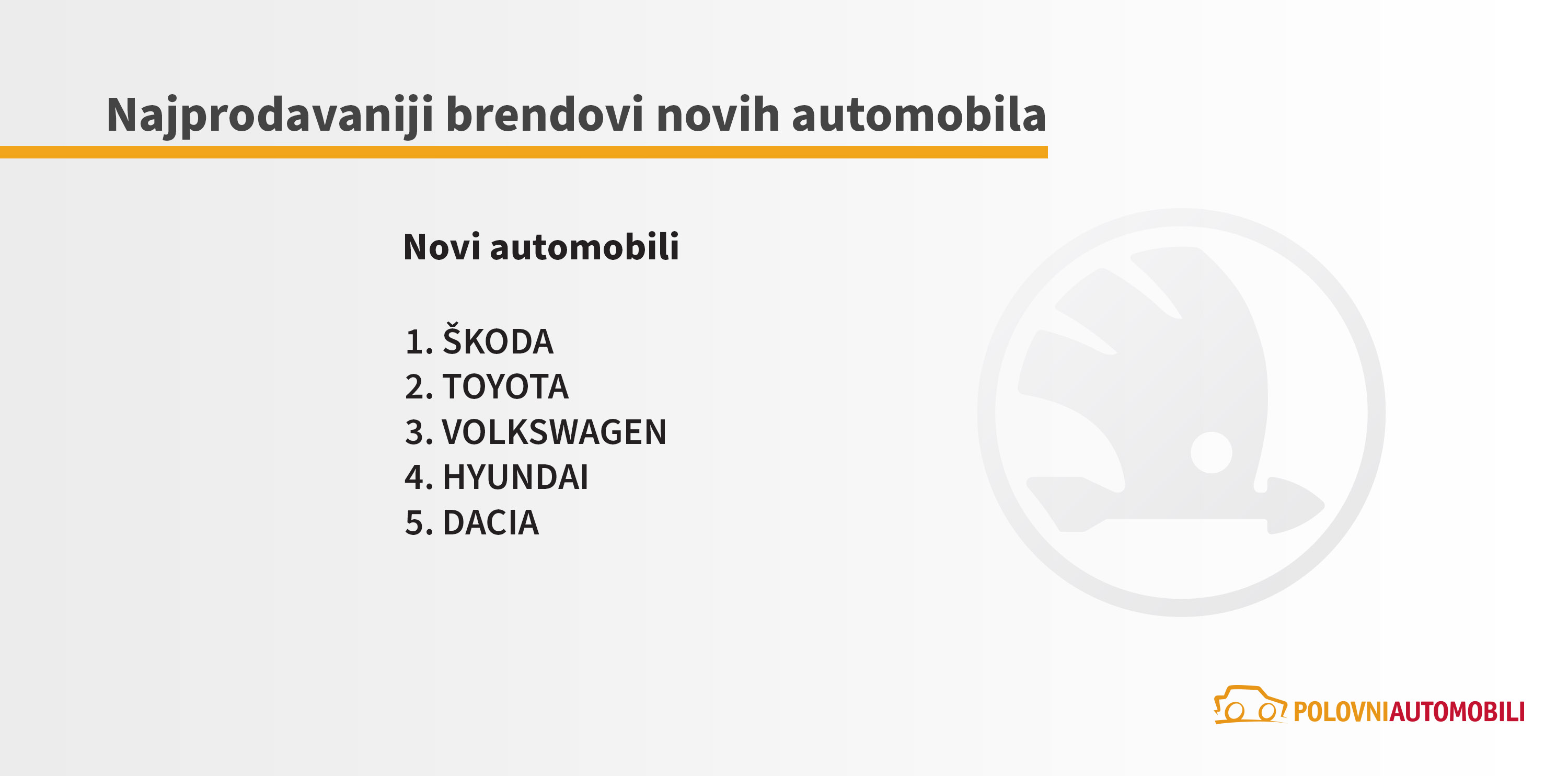 Kao i prethodnih godina, kod novih vozila u prvoj polovini 2023. godine najviše su se prodavali modeli Škode. U vrhu su još Tojota, Folksvagen, Hjundai...