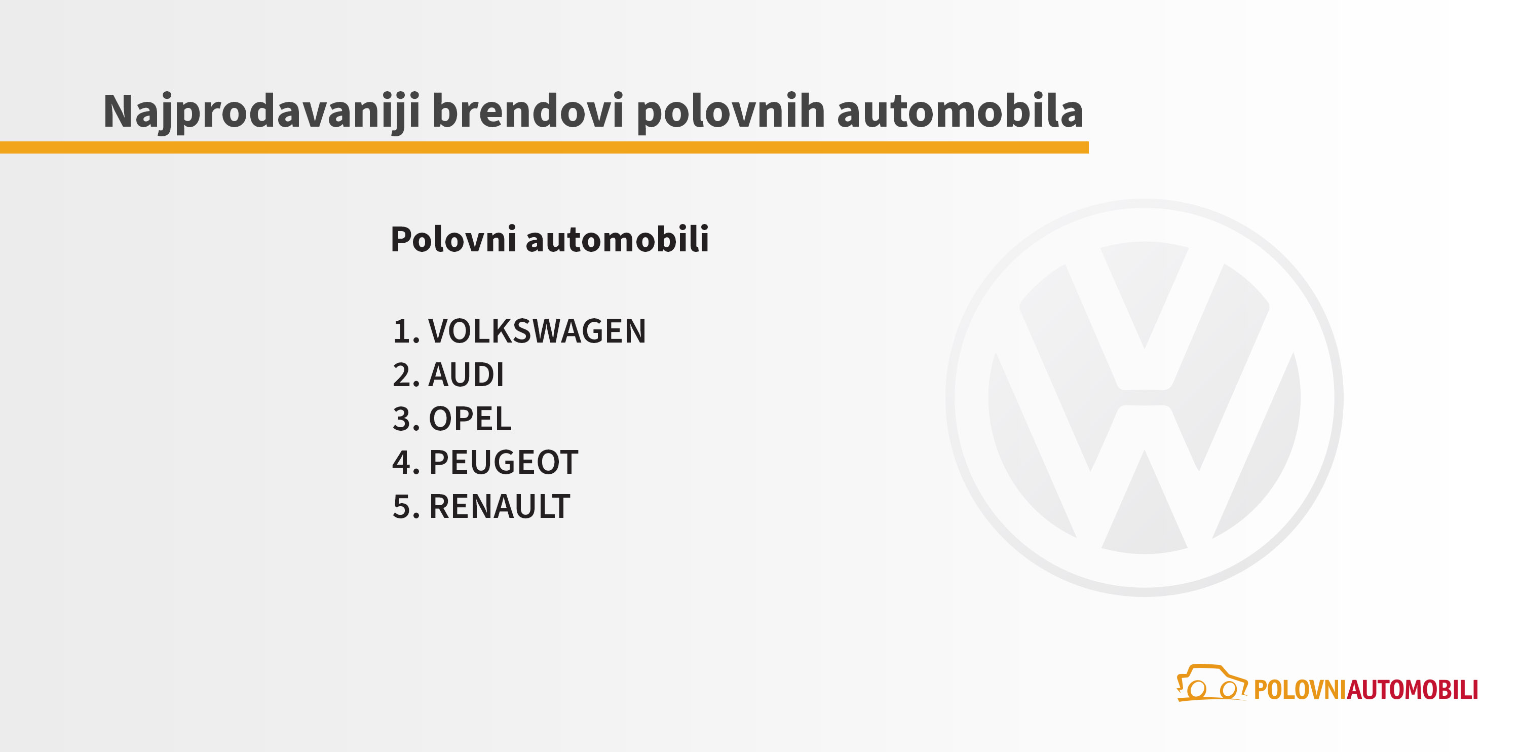 Nema značajnijih promena ni kad je reč o interesovanju za proizvođače i modele. Prosečan srpski vozač i dalje je najviše naklonjen Folksvagenovim uzdanicama: golfu, pasatu i polu, a u vrhu prodaje polovnjaka su još i modeli Audija, Opela, Pežoa i Renoa.