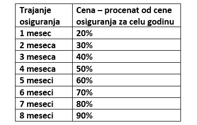 Za obavezno osiguranje ugovoreno na manje od 12 meseci, ne primenjuje se bonus-malus sistem. To važi za sve osiguravajuće kuće.
